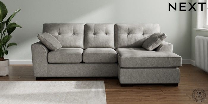 7.2.10 Buy Stamford Buttoned Back Small Sofa Chaise - Right Hand Tweedy Chenille Mid Grey Large Square Angle - Dark from the Next UK online shop Click here to use our accessible website