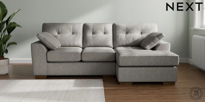 7.2.10 Buy Stamford Buttoned Back Small Sofa Chaise - Right Hand Tweedy Chenille Mid Grey Large Square Angle - Mid from the Next UK online shop Click here to use our accessible website
