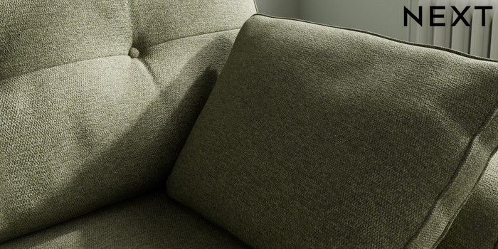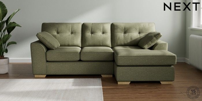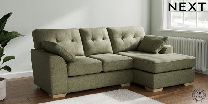 7.2.10 Buy Stamford Buttoned Back Small Sofa Chaise - Right Hand Tweedy Chenille Mid Moss Green Large Square Angle - Light from the Next UK online shop Click here to use our accessible website