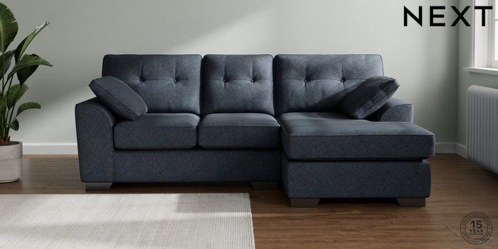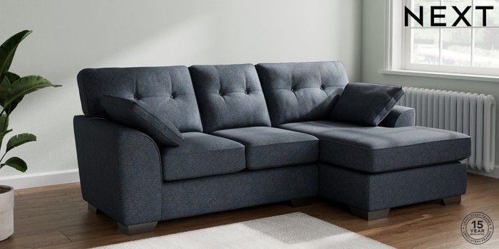 7.2.10 Buy Stamford Buttoned Back Small Sofa Chaise - Right Hand Tweedy Chenille Navy Blue Large Square Angle - Gunmetal from the Next UK online shop Click here to use our accessible website