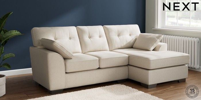 7.3.1 Buy Stamford Buttoned Back Small Sofa Chaise - Right Hand Tweedy Chenille Oyster Large Square Angle - Gunmetal from the Next UK online shop Click here to use our accessible website