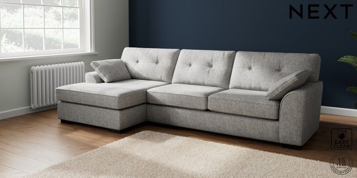 6.12.1 Buy Stamford Buttoned Back Large Sofa Chaise - Left Hand Chunky Boucle Easy Clean Light Grey Large Square Angle - Dark from the Next UK online shop Click here to use our accessible website