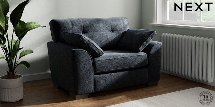 7.2.10 Buy Stamford Buttoned Back Snuggle Boucle Chenille Dark Slate Blue Large Square Angle - Gunmetal from the Next UK online shop Click here to use our accessible website