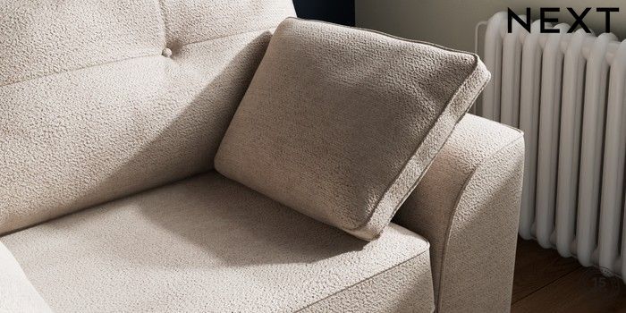 7.2.10 Buy Stamford Buttoned Back Snuggle Boucle Chenille Light Natural Large Square Angle - Mid from the Next UK online shop Click here to use our accessible website