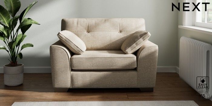 6.12.1 Buy Stamford Buttoned Back Snuggle Boucle Weave Easy Clean Dark Natural Large Square Angle - Gunmetal from the Next UK online shop Click here to use our accessible website