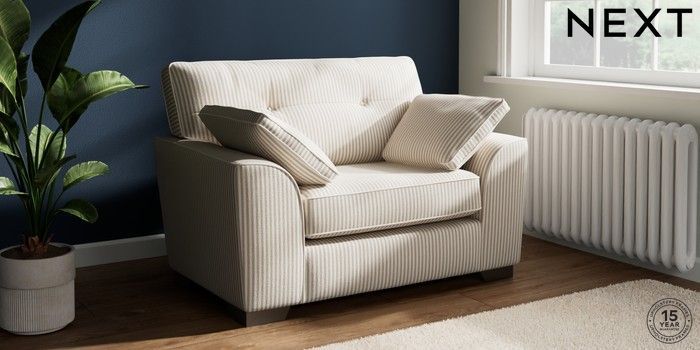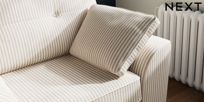 7.3.1 Buy Stamford Buttoned Back Snuggle Chenille Stripe Natural Large Square Angle - Gunmetal from the Next UK online shop Click here to use our accessible website