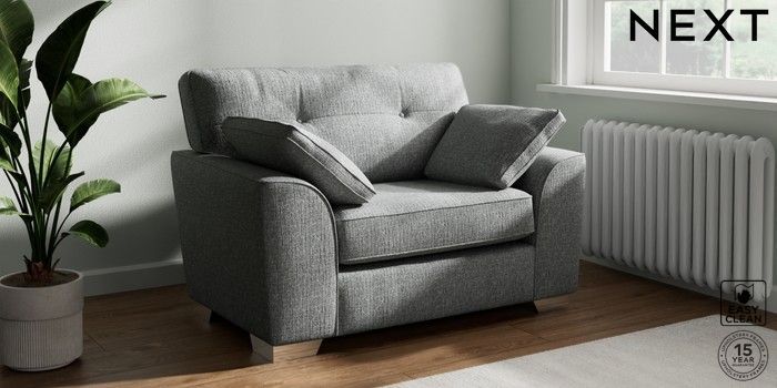 7.2.6 Buy Stamford Buttoned Back Snuggle Chunky Boucle Easy Clean Mid Grey Large Square Angle - Chrome Metal from the Next UK online shop Click here to use our accessible website