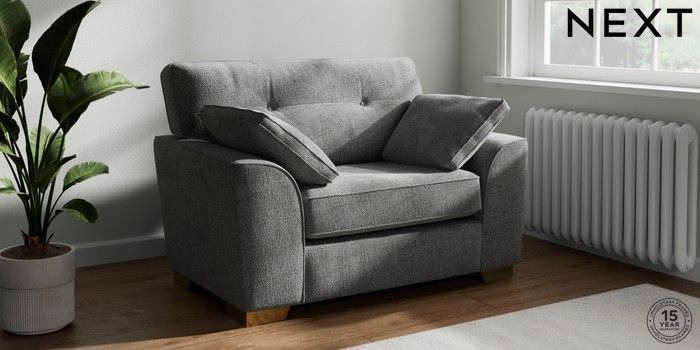 7.2.6 Buy Stamford Buttoned Back Snuggle Chunky Chenille Dark Grey Large Square Angle - Brushed Brass from the Next UK online shop Click here to use our accessible website