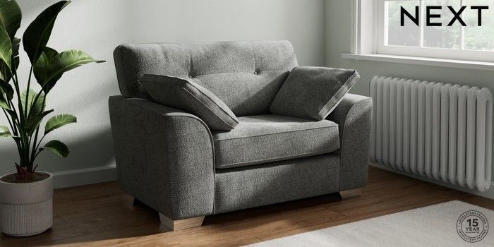7.2.10 Buy Stamford Buttoned Back Snuggle Chunky Chenille Dark Grey Large Square Angle - Chrome Metal from the Next UK online shop Click here to use our accessible website