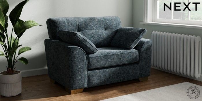 7.2.10 Buy Stamford Buttoned Back Snuggle Chunky Chenille Dark Navy Blue Large Square Angle - Brushed Brass from the Next UK online shop Click here to use our accessible website