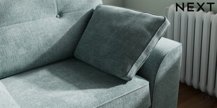 7.2.10 Buy Stamford Buttoned Back Snuggle Chunky Chenille Light Teal Green Large Square Angle - Brushed Brass from the Next UK online shop Click here to use our accessible website