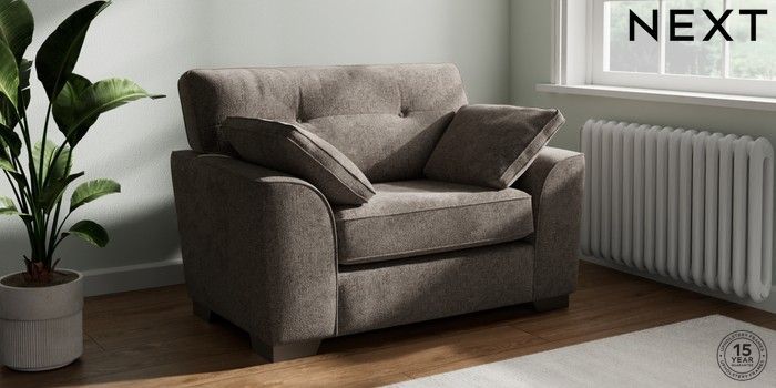 7.2.10 Buy Stamford Buttoned Back Snuggle Chunky Chenille Mink Brown Large Square Angle - Gunmetal from the Next UK online shop Click here to use our accessible website