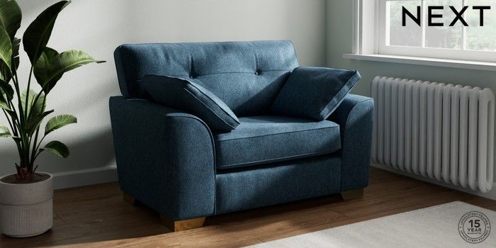 7.2.10 Buy Stamford Buttoned Back Snuggle Cotswold Chenille Dark Blue Large Square Angle - Brushed Brass from the Next UK online shop Click here to use our accessible website