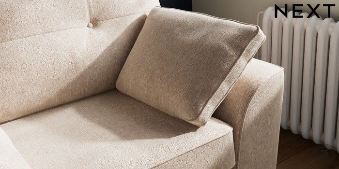 7.2.10 Buy Stamford Buttoned Back Snuggle Cotswold Chenille Light Natural Large Square Angle - Brushed Brass from the Next UK online shop Click here to use our accessible website