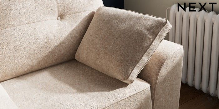 7.2.10 Buy Stamford Buttoned Back Snuggle Cotswold Chenille Light Natural Large Square Angle - Mid from the Next UK online shop Click here to use our accessible website