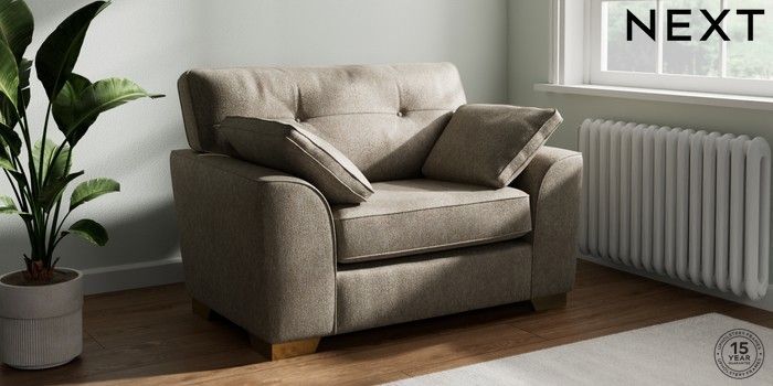 7.2.6 Buy Stamford Buttoned Back Snuggle Cotswold Chenille Mid Mink Brown Large Square Angle - Brushed Brass from the Next UK online shop Click here to use our accessible website