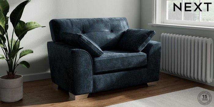 7.2.10 Buy Stamford Buttoned Back Snuggle Distressed Velour Midnight Blue Large Square Angle - Chrome Metal from the Next UK online shop Click here to use our accessible website