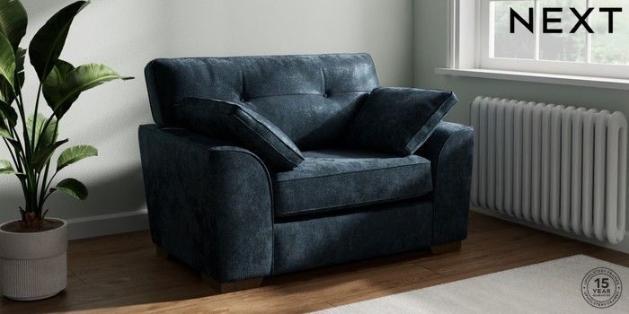 7.2.10 Buy Stamford Buttoned Back Snuggle Distressed Velour Midnight Blue Large Square Angle - Mid from the Next UK online shop Click here to use our accessible website