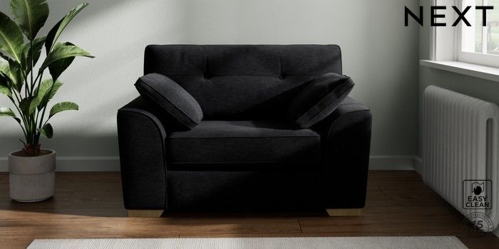7.2.6 Buy Stamford Buttoned Back Snuggle Fine Chenille Easy Clean Black Large Square Angle - Light from the Next UK online shop Click here to use our accessible website