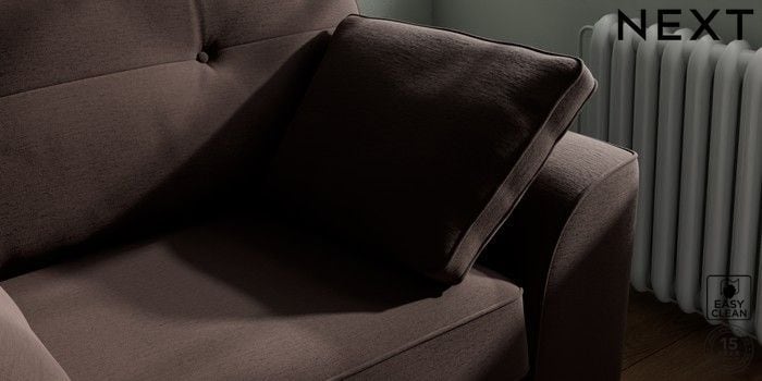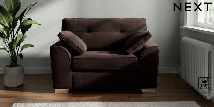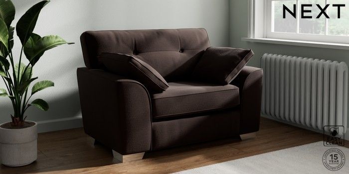 7.2.10 Buy Stamford Buttoned Back Snuggle Fine Chenille Easy Clean Chocolate Brown Large Square Angle - Chrome Metal from the Next UK online shop Click here to use our accessible website
