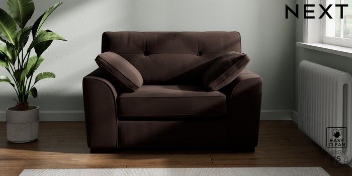 7.2.10 Buy Stamford Buttoned Back Snuggle Fine Chenille Easy Clean Chocolate Brown Large Square Angle - Dark from the Next UK online shop Click here to use our accessible website