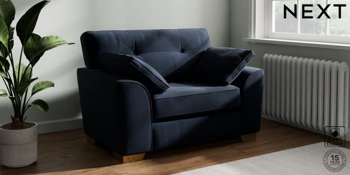 7.2.10 Buy Stamford Buttoned Back Snuggle Fine Chenille Easy Clean Dark Navy Blue Large Square Angle - Brushed Brass from the Next UK online shop Click here to use our accessible website