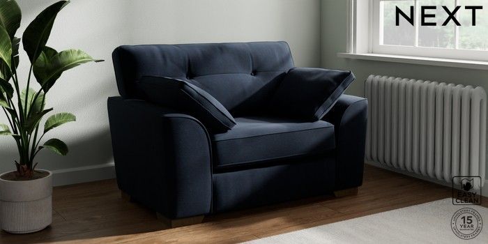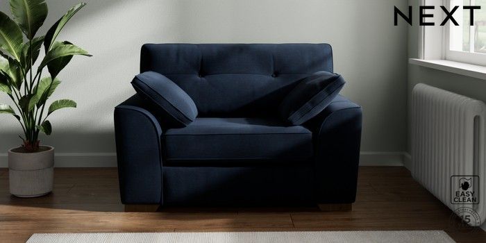 7.2.10 Buy Stamford Buttoned Back Snuggle Fine Chenille Easy Clean Dark Navy Blue Large Square Angle - Mid from the Next UK online shop Click here to use our accessible website