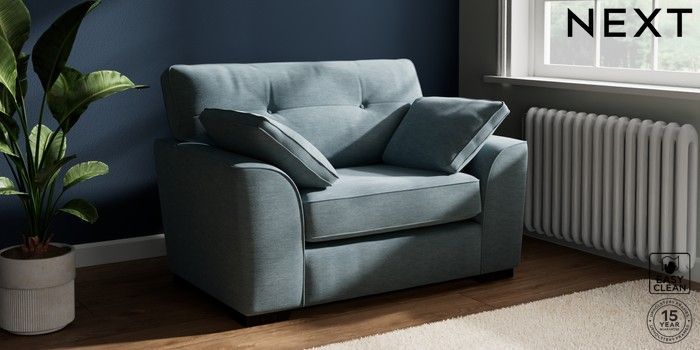 7.2.10 Buy Stamford Buttoned Back Snuggle Fine Chenille Easy Clean Mid Blue Large Square Angle - Dark from the Next UK online shop Click here to use our accessible website