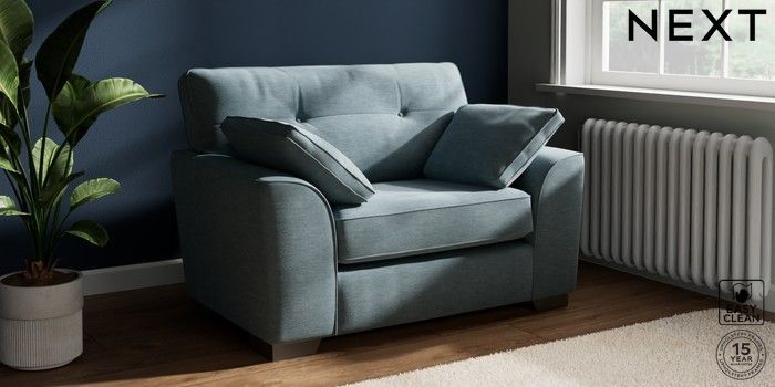 7.2.10 Buy Stamford Buttoned Back Snuggle Fine Chenille Easy Clean Mid Blue Large Square Angle - Gunmetal from the Next UK online shop Click here to use our accessible website