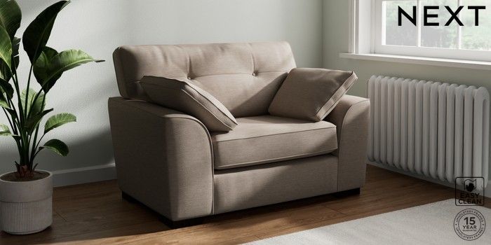7.2.10 Buy Stamford Buttoned Back Snuggle Fine Chenille Easy Clean Mid Taupe Brown Large Square Angle - Dark from the Next UK online shop Click here to use our accessible website