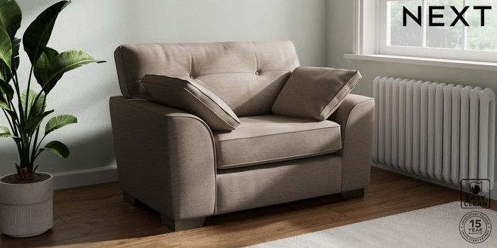 7.3.1 Buy Stamford Buttoned Back Snuggle Fine Chenille Easy Clean Mid Taupe Brown Large Square Angle - Gunmetal from the Next UK online shop Click here to use our accessible website