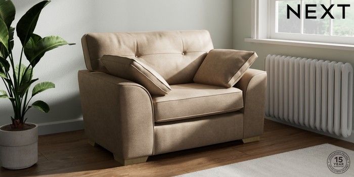 7.2.10 Buy Stamford Buttoned Back Snuggle Luxe Chenille Mid Camel Beige Large Square Angle - Light from the Next UK online shop Click here to use our accessible website