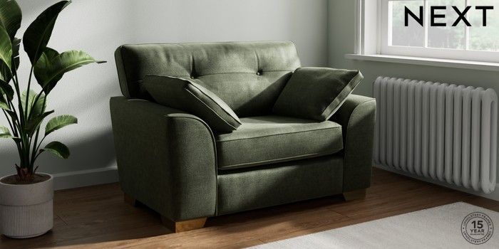 7.2.6 Buy Stamford Buttoned Back Snuggle Luxe Chenille Mid Green Large Square Angle - Brushed Brass from the Next UK online shop Click here to use our accessible website
