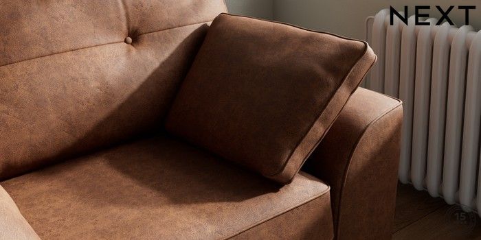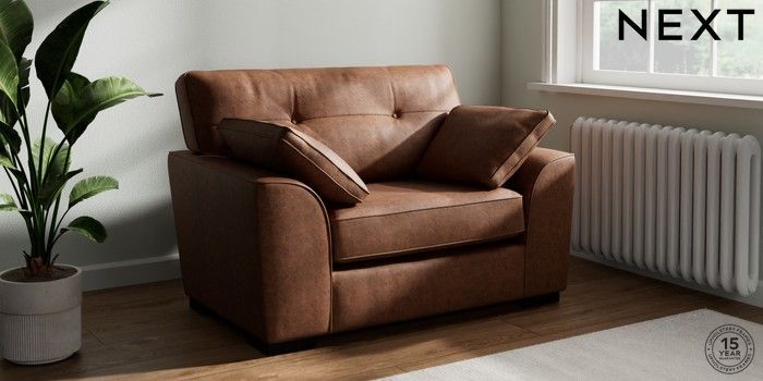 7.2.10 Buy Stamford Buttoned Back Snuggle Monza Faux Leather Easy Clean Chestnut Brown Large Square Angle - Dark from the Next UK online shop Click here to use our accessible website