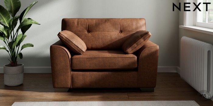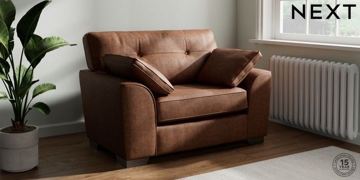 7.3.1 Buy Stamford Buttoned Back Snuggle Monza Faux Leather Easy Clean Chestnut Brown Large Square Angle - Gunmetal from the Next UK online shop Click here to use our accessible website