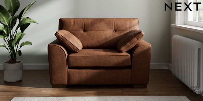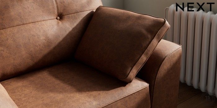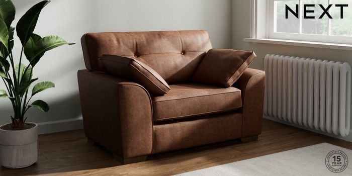 7.2.10 Buy Stamford Buttoned Back Snuggle Monza Faux Leather Easy Clean Chestnut Brown Large Square Angle - Mid from the Next UK online shop Click here to use our accessible website
