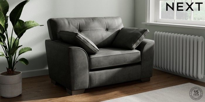 7.3.1 Buy Stamford Buttoned Back Snuggle Monza Faux Leather Easy Clean Dark Grey Large Square Angle - Gunmetal from the Next UK online shop Click here to use our accessible website