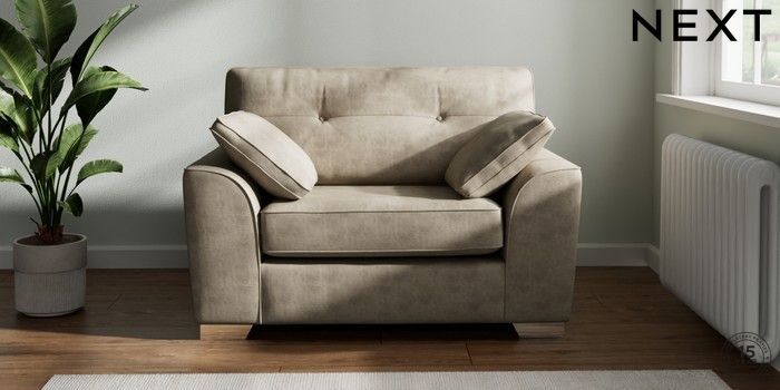7.3.1 Buy Stamford Buttoned Back Snuggle Monza Faux Leather Easy Clean Mink Brown Large Square Angle - Chrome Metal from the Next UK online shop Click here to use our accessible website