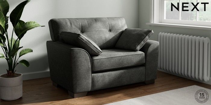 7.2.10 Buy Stamford Buttoned Back Snuggle Plush Chenille Dark Grey Large Square Angle - Gunmetal from the Next UK online shop Click here to use our accessible website