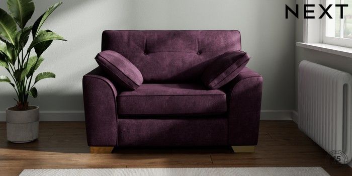 7.2.10 Buy Stamford Buttoned Back Snuggle Plush Chenille Dark Plum Purple Large Square Angle - Brushed Brass from the Next UK online shop Click here to use our accessible website