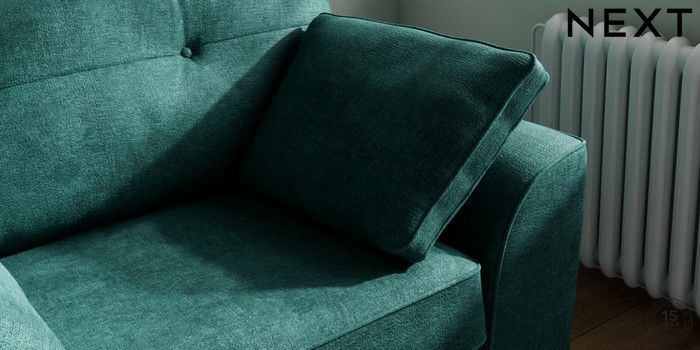 7.2.10 Buy Stamford Buttoned Back Snuggle Plush Chenille Dark Teal Green Large Square Angle - Brushed Brass from the Next UK online shop Click here to use our accessible website