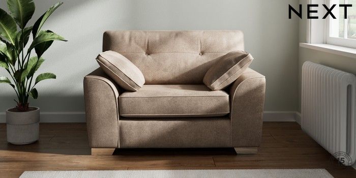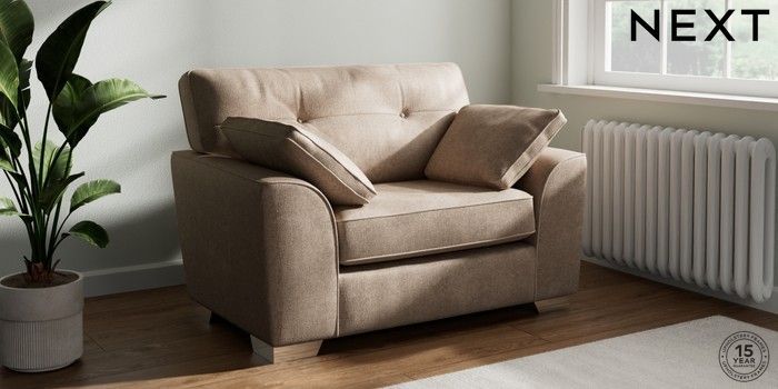 7.2.6 Buy Stamford Buttoned Back Snuggle Plush Chenille Mid Natural Large Square Angle - Chrome Metal from the Next UK online shop Click here to use our accessible website