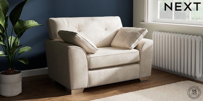 7.2.10 Buy Stamford Buttoned Back Snuggle Plush Chenille Oyster Large Square Angle - Chrome Metal from the Next UK online shop Click here to use our accessible website