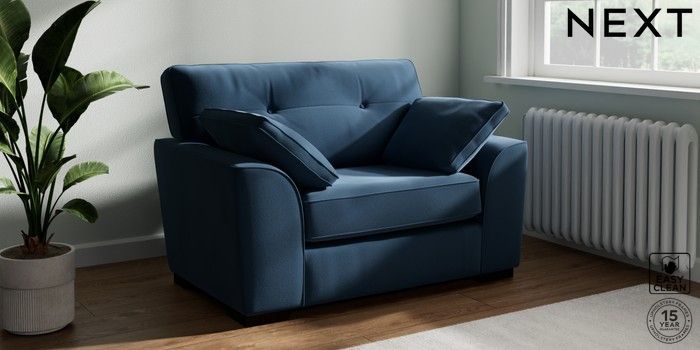 7.2.10 Buy Stamford Buttoned Back Snuggle Plush Velvet Easy Clean Airforce Blue Large Square Angle - Dark from the Next UK online shop Click here to use our accessible website