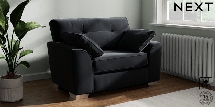 7.2.10 Buy Stamford Buttoned Back Snuggle Plush Velvet Easy Clean Charcoal Grey Large Square Angle - Chrome Metal from the Next UK online shop Click here to use our accessible website