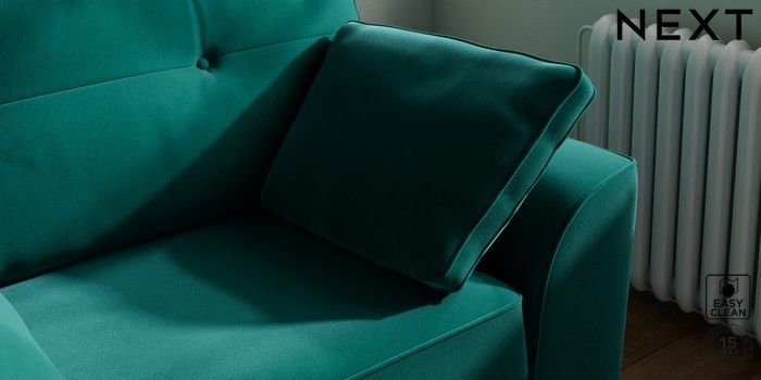 7.2.10 Buy Stamford Buttoned Back Snuggle Plush Velvet Easy Clean Juniper Green Large Square Angle - Mid from the Next UK online shop Click here to use our accessible website
