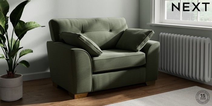 7.2.10 Buy Stamford Buttoned Back Snuggle Relaxed Linen Look Dark Green Large Square Angle - Brushed Brass from the Next UK online shop Click here to use our accessible website