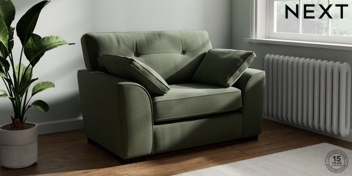 7.2.10 Buy Stamford Buttoned Back Snuggle Relaxed Linen Look Dark Green Large Square Angle - Dark from the Next UK online shop Click here to use our accessible website
