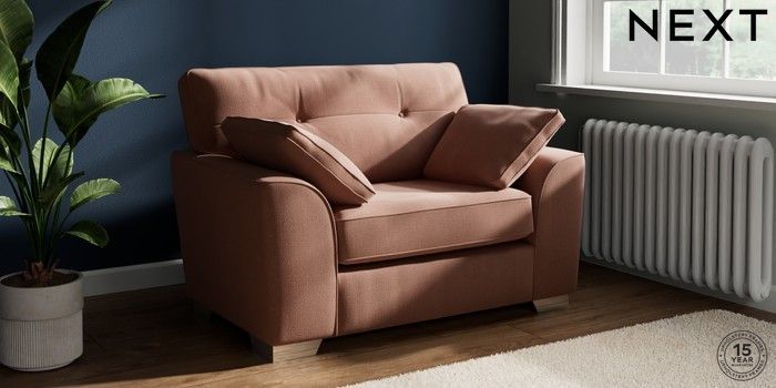 7.2.10 Buy Stamford Buttoned Back Snuggle Relaxed Linen Look Light Rust Brown Large Square Angle - Chrome Metal from the Next UK online shop Click here to use our accessible website