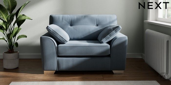 7.2.10 Buy Stamford Buttoned Back Snuggle Relaxed Linen Look Mid Blue Large Square Angle - Chrome Metal from the Next UK online shop Click here to use our accessible website